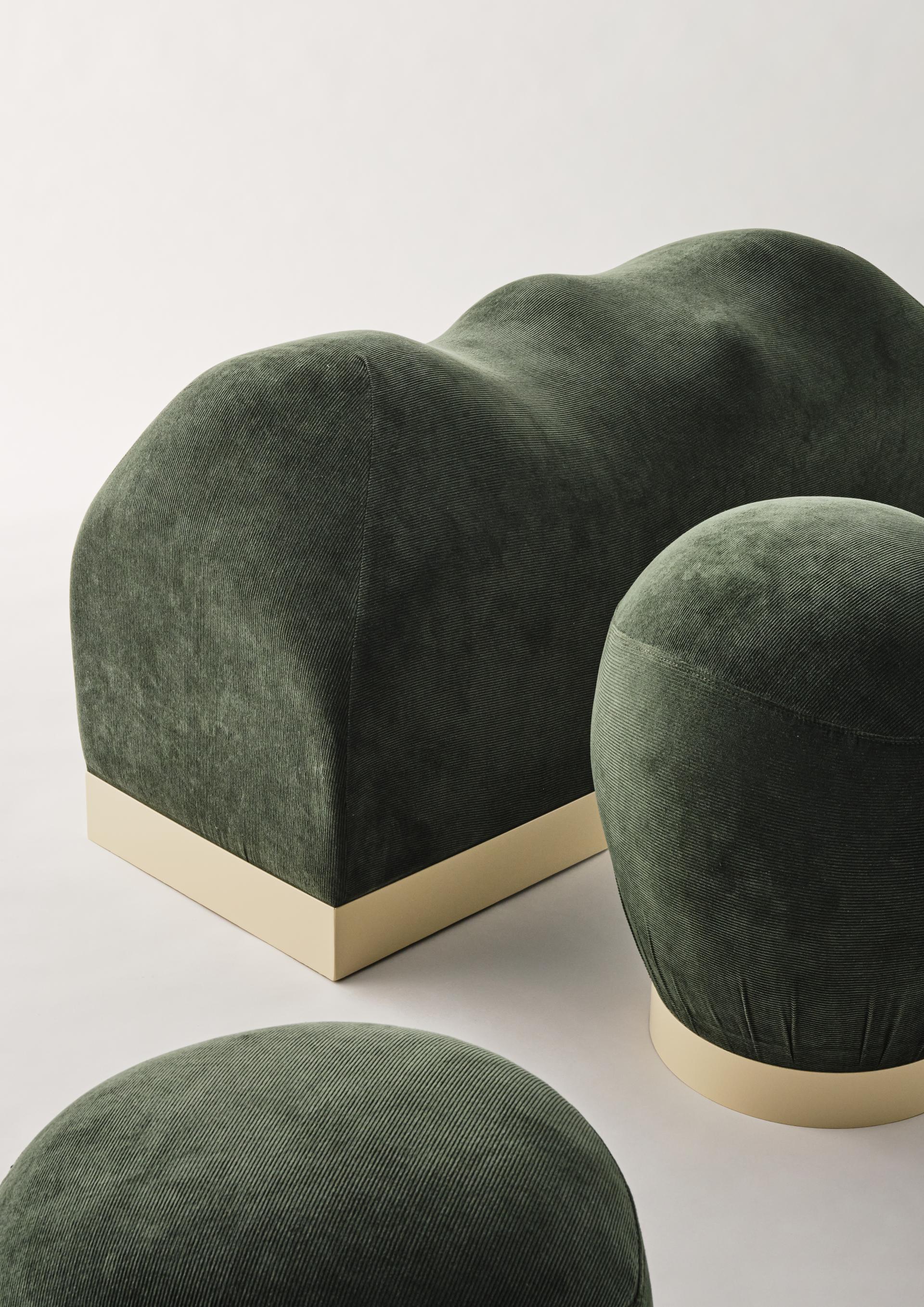 Bench 1070x410x570(mm),Stool 1 430x430x510(mm), Stool 2 430x430x520(mm) / 스펀지, 원단, 알루미늄 (Sponge, fabric, aluminum) / 2024