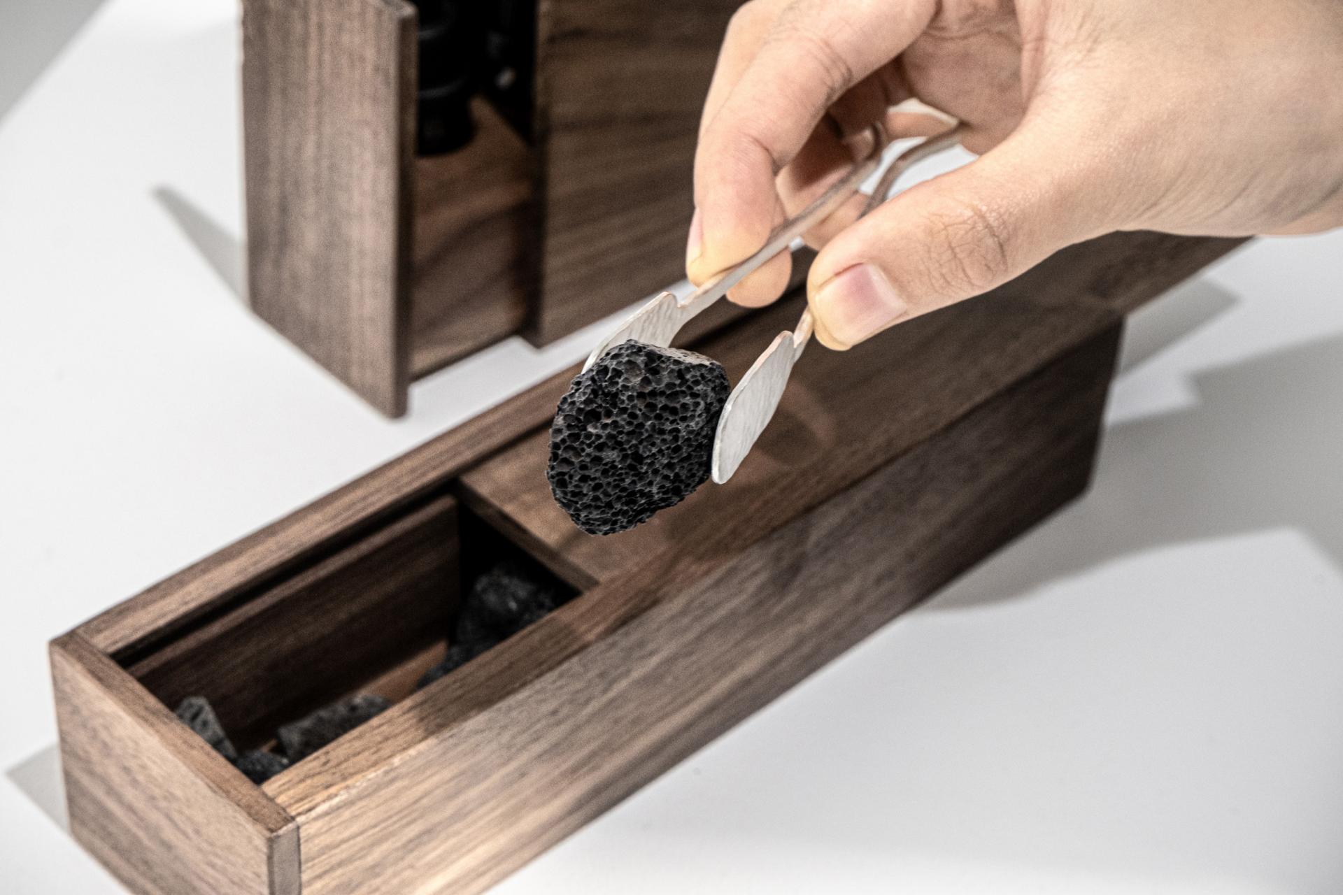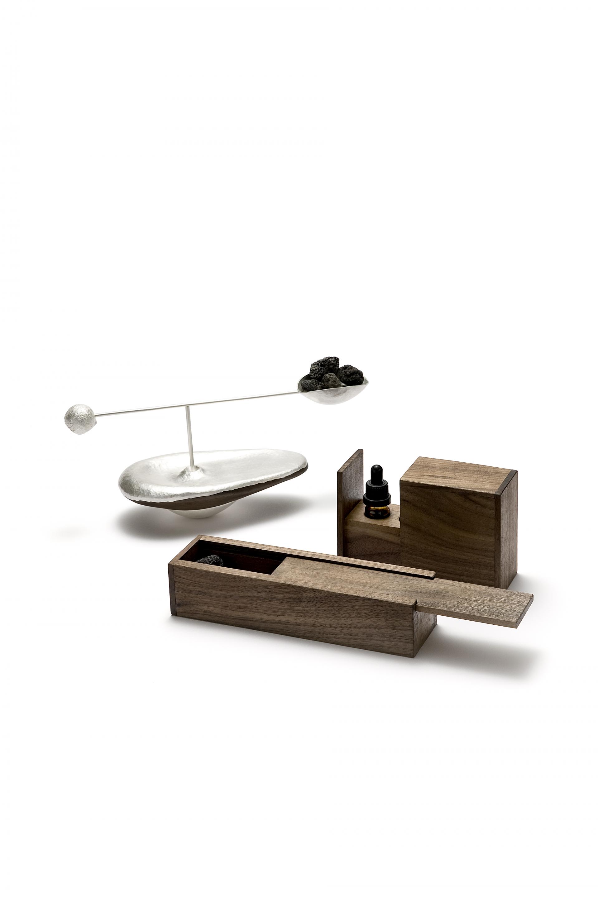 100x300x120 (mm) 60x220x50 (mm) 45x80x85 (mm) 120x70x30 (mm) / 적동/황동에 은 도금, 월넛, 화산석 Silver plating on copper and brass, walnut, volcanic rock / 2024