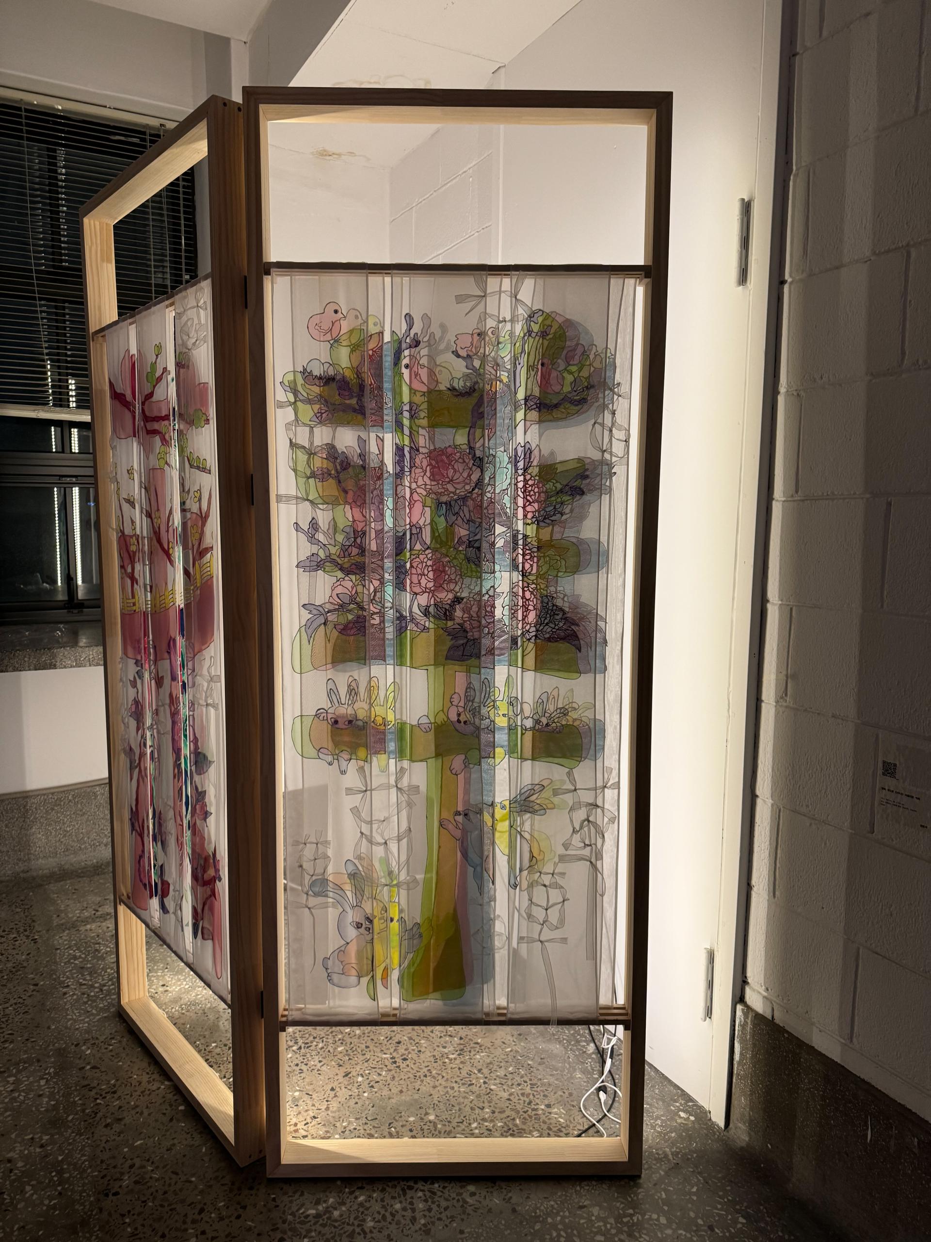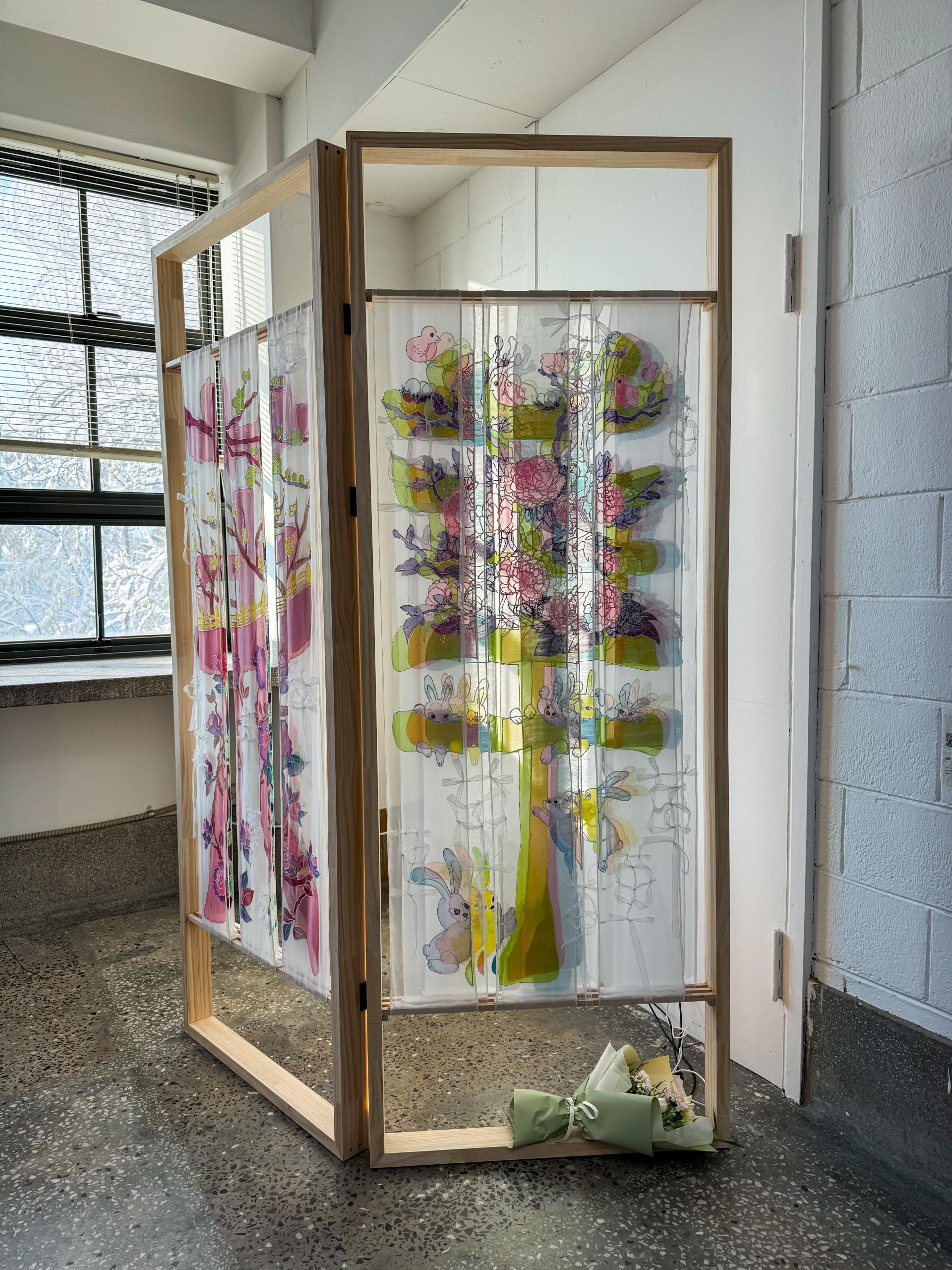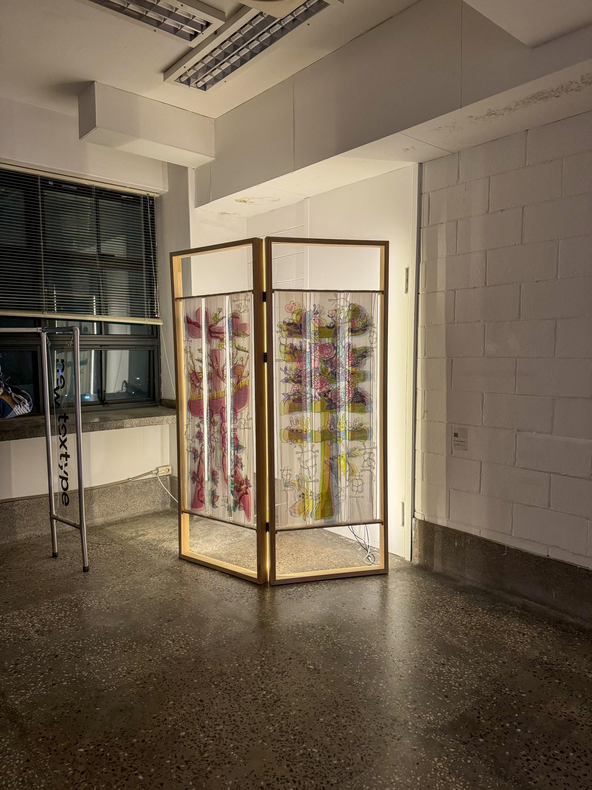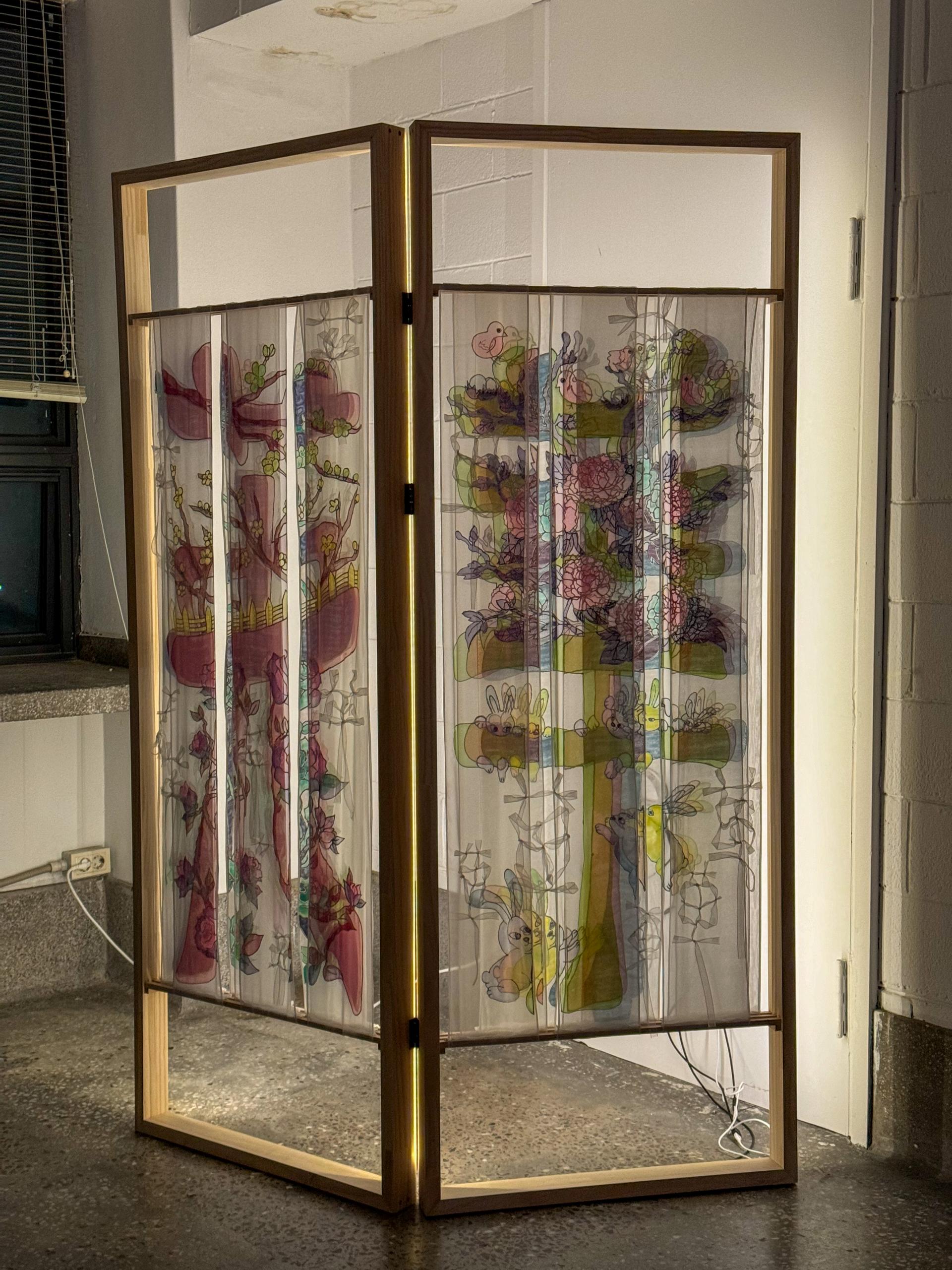 또한 이 디자인을 병풍이 연상되는 나무틀에 적용하여 현대의 파티션 형태로 제작하였습니다.