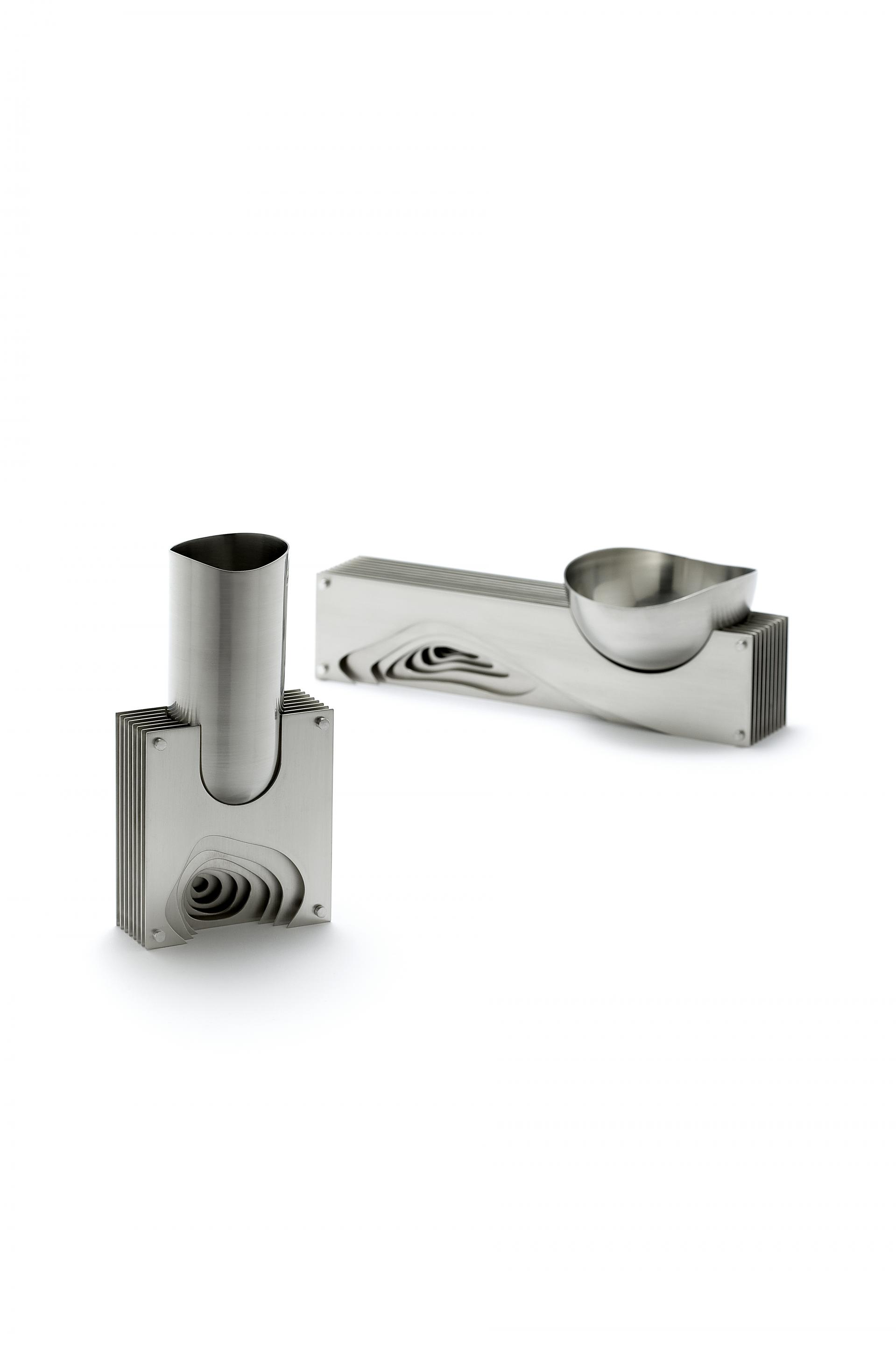 나무의 결인 나이테를 표현한 트레이와 연필꽂이.