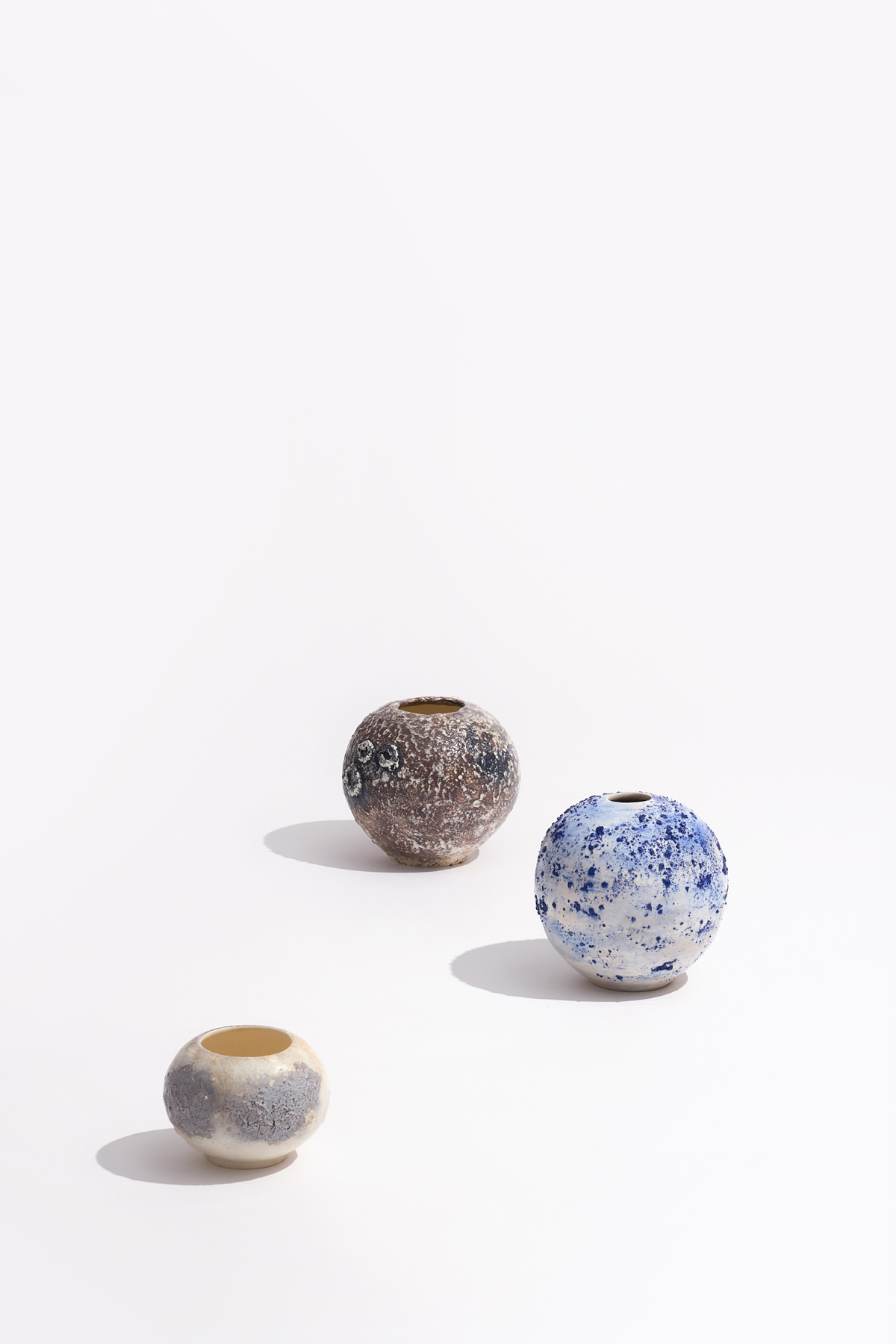200 x 200 x 190mm, 160 x 160 x 200mm, 150 x 150 x 110mm /백자토, 투명유, 산화소성/ 2024