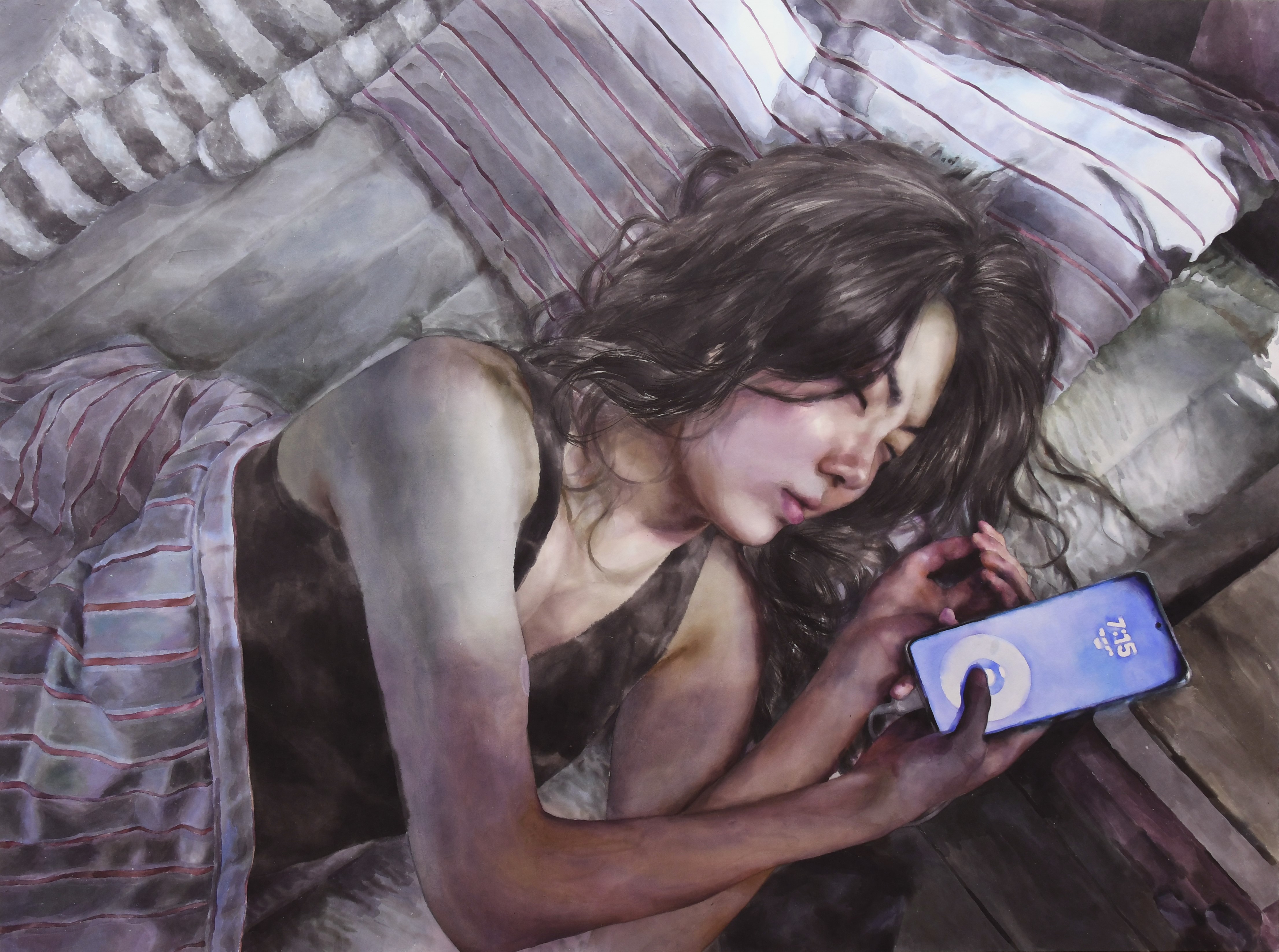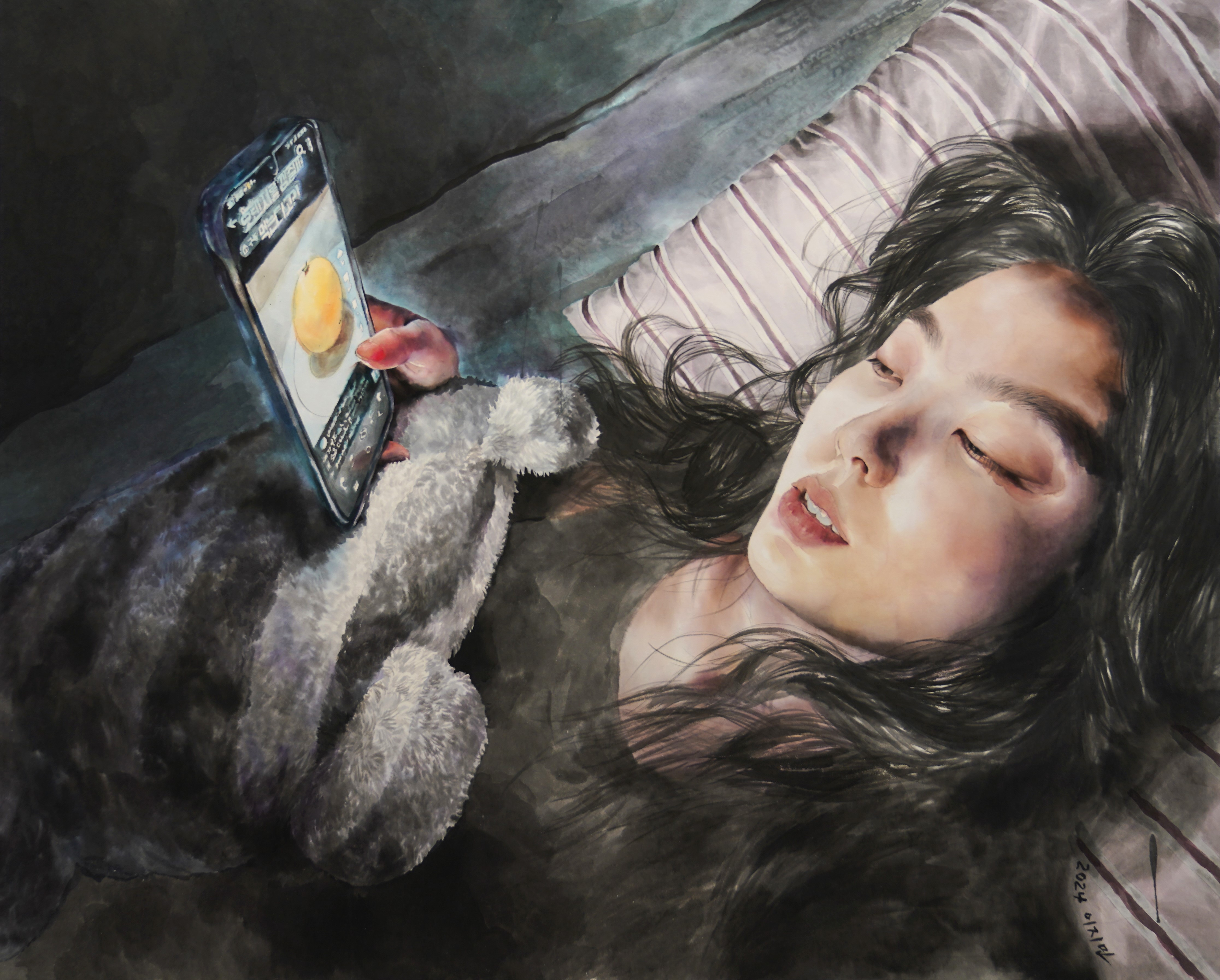 매일 아침 무의식적으로 핸드폰 알람을 끄는 행위를 반복하는는 일상 속 한 장면을 포착하였다.