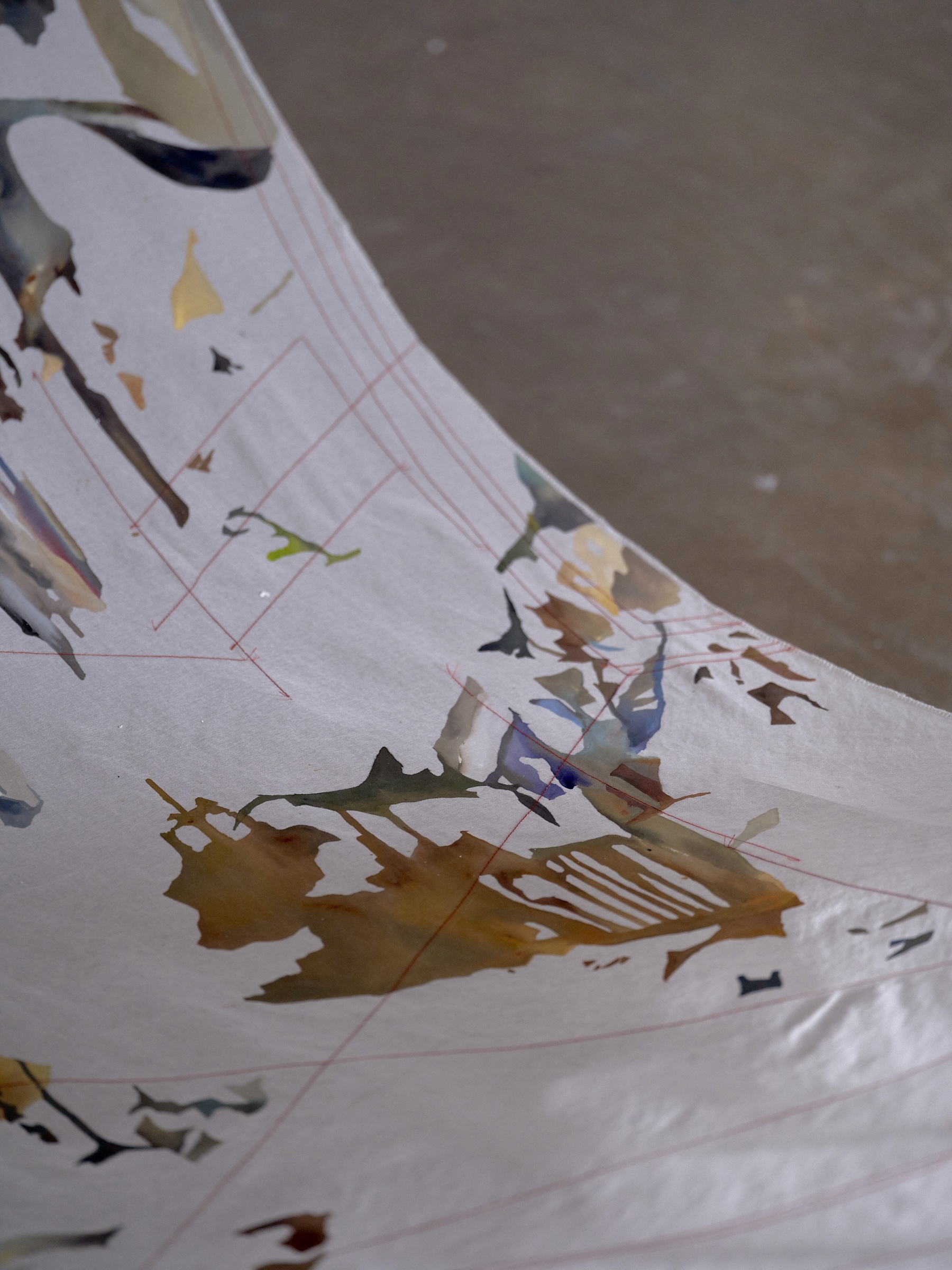 가변크기 / 노방에 과슈, 아크릴, 실 / 2024