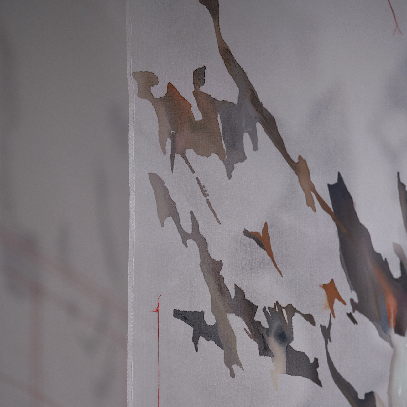 파편화된 감각의 형상들은 수직으로 곧게 뻗은 직선의 공간 위로 집산되어 다층적인 관계를 나타내고, 이내 흘러내리며 뒤섞인다. 그렇게 부유하고 흘러내리고 뒤섞인다.