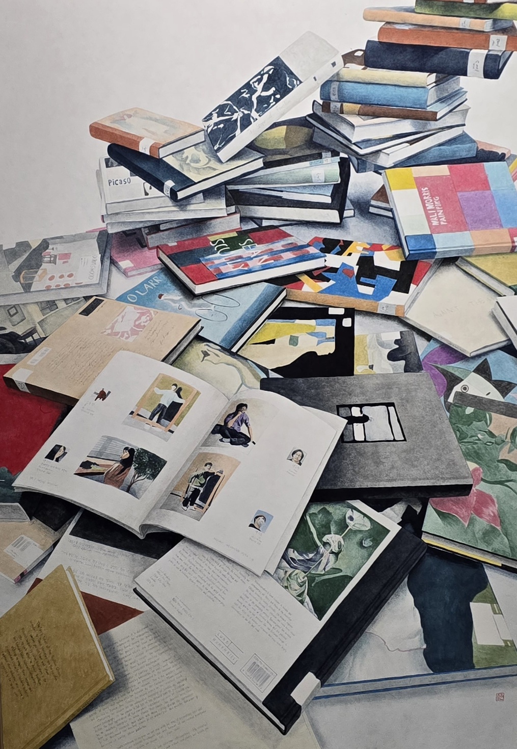 평소와는 다른 시점으로 보는 것 들이 즐겁고 또한 두렵기도 한 나의 생각을 정돈 되지않고 어질러져 있는 책들을 이용하여 표현한 것이다.