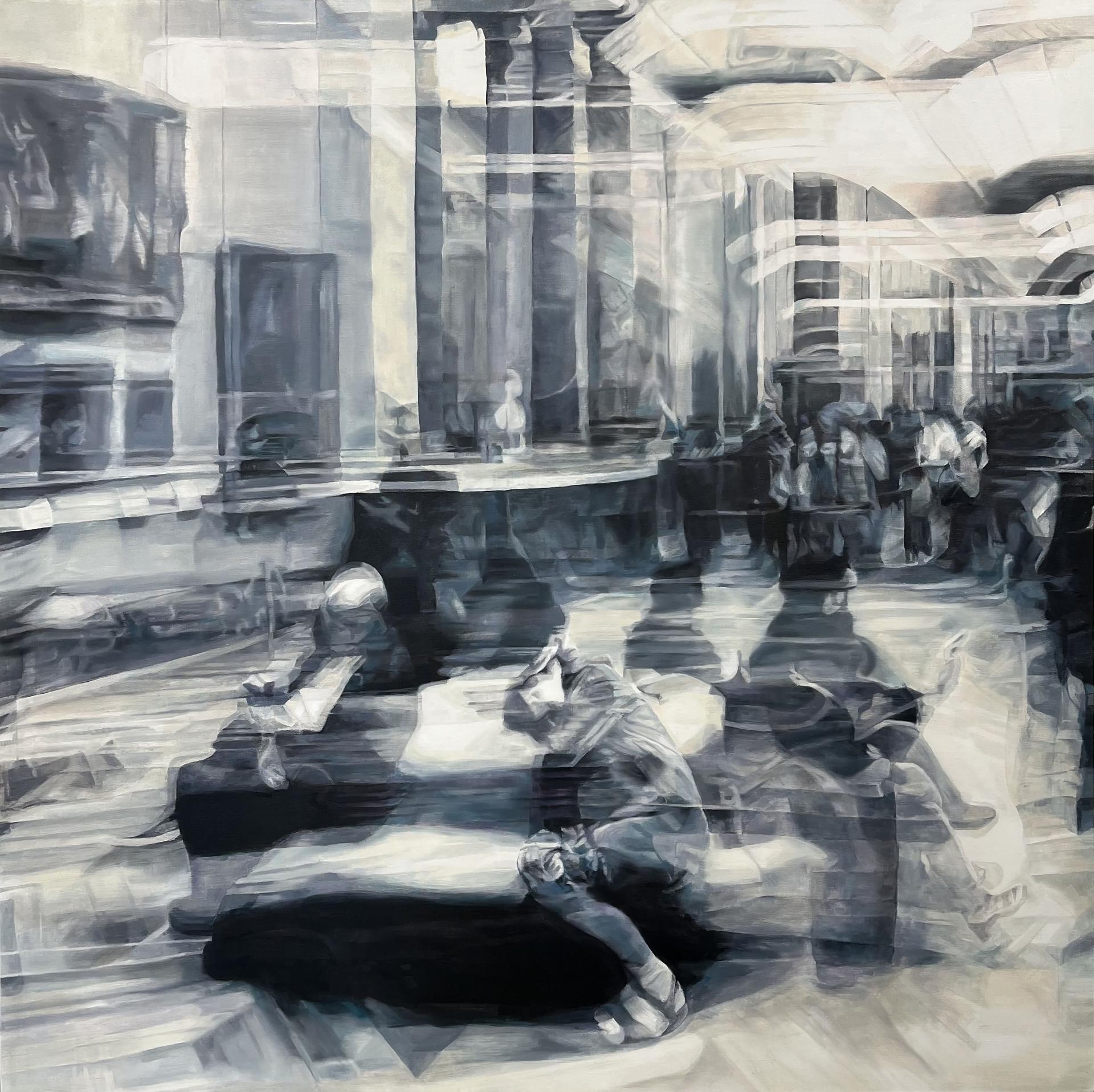‘과거와 현재’ 시간의 경계에 모호함을 느끼고, 이를 ‘끊임없는 현재의 연속’으로 정의 내려 작업합니다. 다양한 움직임과 잔상, 흐릿함을 더해 점차 잊혀져 가는 현재를 캔버스 위에 담아내고, 시간에 대한 새로운 시각을 제시합니다.