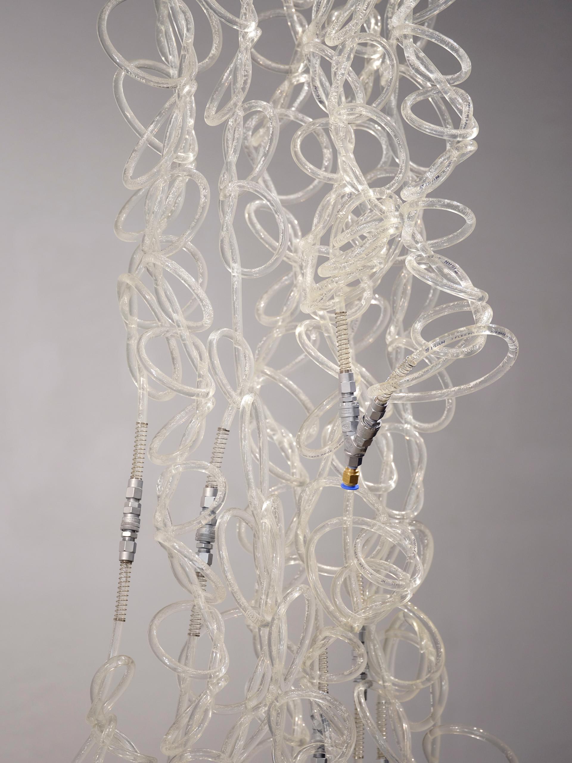 호스 속 물은 무한히 순환한다. 목적 없이 유영하는 물의 흐름은 눈 앞에 뚜렷이 반사되며 물과 호스의 관계를 투명하게 가시화한다.