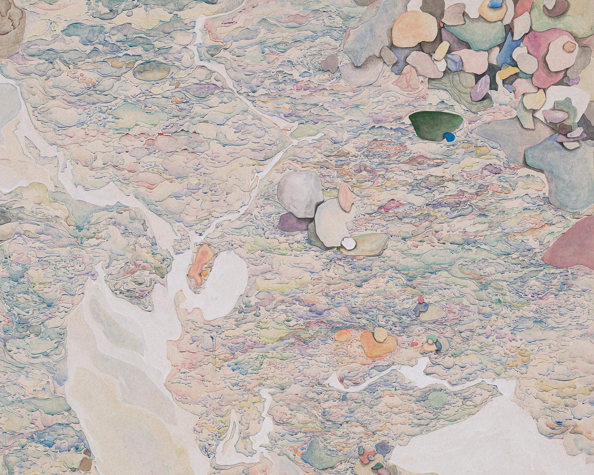 물결의 잔상을 추적하고 그 끊임없는 움직임을 분채와 석채로 옅게 쌓아낸다.